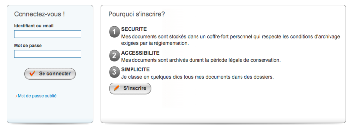 - vous rendre sur la page de connexion du coffre-fort numérique : myarkevia ;